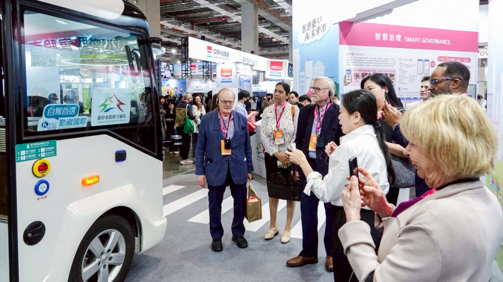 數位局說明,開展首日交流氣氛熱烈,多國貴賓皆親臨現場,對台中將AI轉化為具體市政方案的執行力給予高度評價;東海大學張鐙文教授更率學生北上參觀台中展區。