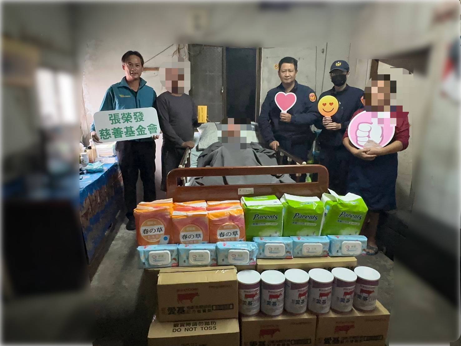 吉安分局水源派出所員警於執行家戶訪查勤務時,主動關懷轄內弱勢家庭,得知徐姓老翁家庭困境後,立即通報並聯繫分局第三組,協助轉介張榮發慈善基金會。該基金會隨即啟動關懷機制,由訪查部東部辦事處副課長江智宇親自前往關懷訪視,並提供補助金、奶粉、尿布等生活必需物資,合計新臺幣2萬5,000元,實際紓解家庭燃眉之急。