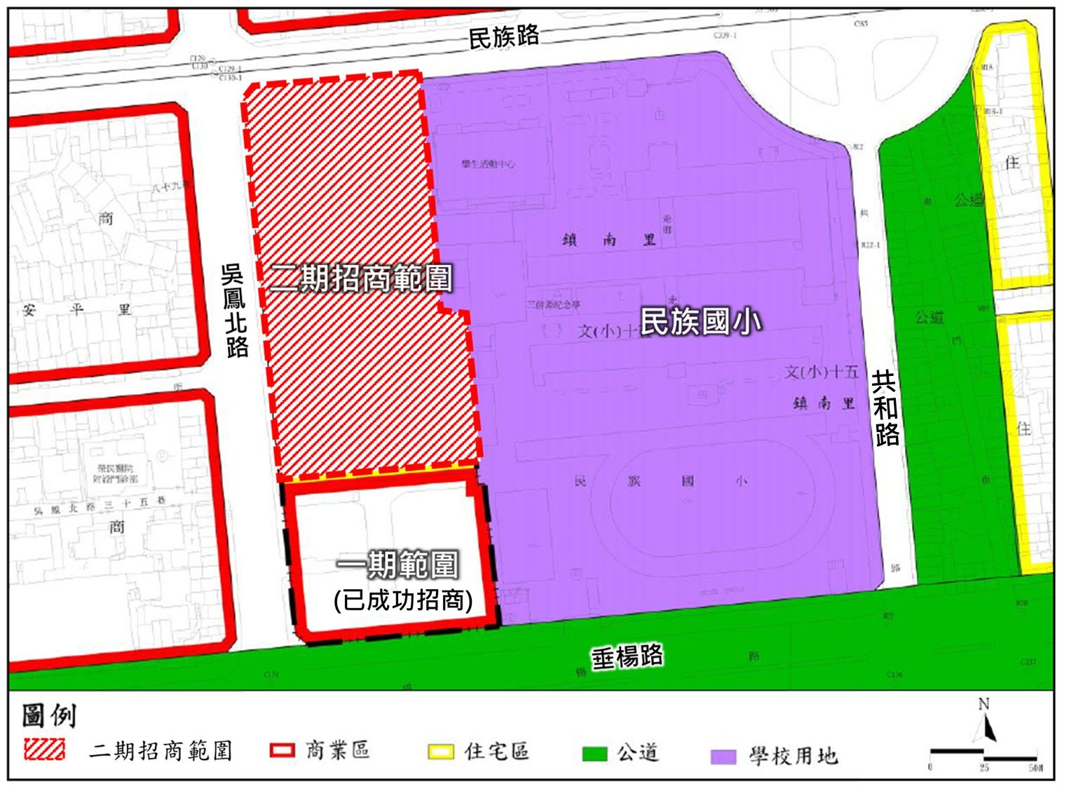 為加速嘉義市東區整體發展,活化市中心公有土地資源,嘉義市政府辦理「嘉義市民族國小西側南門段二小段 88 等 8 筆土地公辦都市更新事業計畫」公開評選實施者案,已於114年12月30日正式公告招商,公告期間至 115 年 4 月 28 日止,誠摯邀請優質投資團隊踴躍參與,共同打造嘉義市中心新一代城市核心。 嘉義市長黃敏惠表示,「民族國小西側公辦都更二期」位處市中心,緊鄰民族路、垂楊路等主要幹道,周邊串聯文化路商圈、東市場、影城及優質文教生活圈,區位條件成熟、生活機能完整,是市中心少有兼具規模、土地坵塊完整且權屬單純的開發基地。市府多年來整合公有土地資源、整體規劃,期待透過公辦都市更新機制,引入優質投資開發者,在兼顧公共利益的前提下,活化城市核心土地,為嘉義市「東區大進步」注入新的成長動能。 市府都市發展處許懷群處長進一步指出,本案基地屬商業區(商二),面積約 9,837 平方公尺(約 2,976 坪),為一期基地面積的 2 倍,且土地權屬全數為公有,分屬嘉義市政府、教育部及財政部國有財產署所有,無私有產權整合問題,現況地上物均已清空,具備可即時啟動開發之優勢。透過公辦都市更新機制,可導入住宅、商業及公共服務空間,更規劃多項公益回饋設施,包括社會住宅、社會福利設施及公共停車空間。預計更新後,透過都市更新容積獎勵,可開發樓地板面積將超過 8 萬平方公尺,整體投資金額預估超過 50 億元,為嘉義市近年來市中心規模最大、條件最優異的公辦都更招商案件之一。 為協助投資者深入了解本案未來發展潛力及招商文件內容,市府將於115年1月19日及1月28日,分別於嘉義市及臺北市辦理招商說明會,針對公辦都更招商重點及後續作業流程進行完整說明,並進行意見交流,期望透過公開透明的招商程序,吸引優質投資團隊,攜手打造全齡共享、世代宜居的嘉義市中心新風貌。 詳情請至嘉義市政府全球資訊網首頁/電子公告欄(https://www.chiayi.gov.tw/News.aspx?n=464&sms=9155),或至嘉義市政府都市發展處網站(urban.chiayi.gov.tw)/訊息專欄/都市更新科參閱。 招商說明會場次如下: ● 嘉義場 (一)時間:民國115年1月19日(星期一)14:30-16:00 (二)地點:嘉義市鈺通大飯店2樓鈺典閣(嘉義市東區維新路7號) ● 臺北場 (一)時間:民國115年1月28日(星期三)14:30-16:00 (二)地點:臺北寒舍艾美酒店2樓畢宿廳(臺北市信義區松仁路38號)