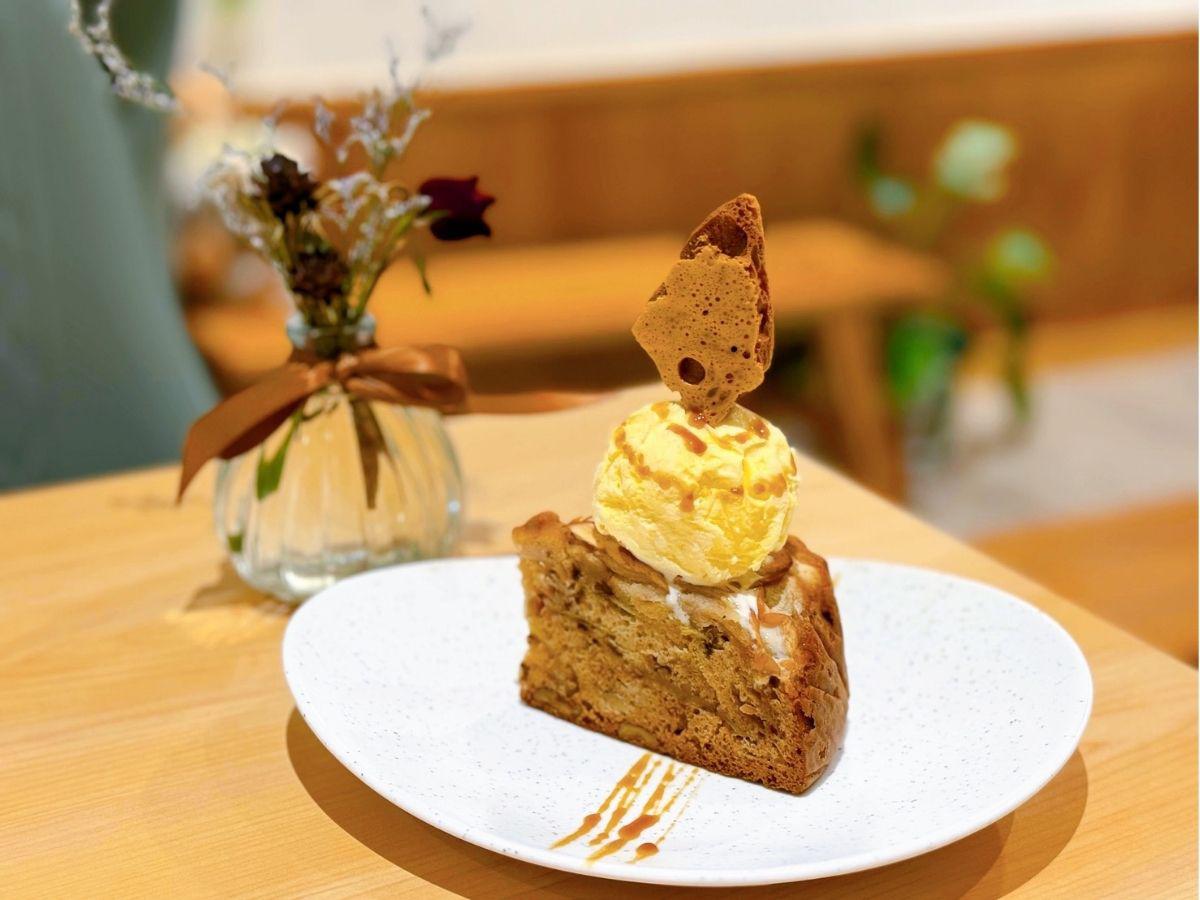 甜點皆為每日手作供應,以「老奶奶蘋果蛋糕」為招牌,搭配冰淇淋享用。甜點數量有限,建議早到或預約。