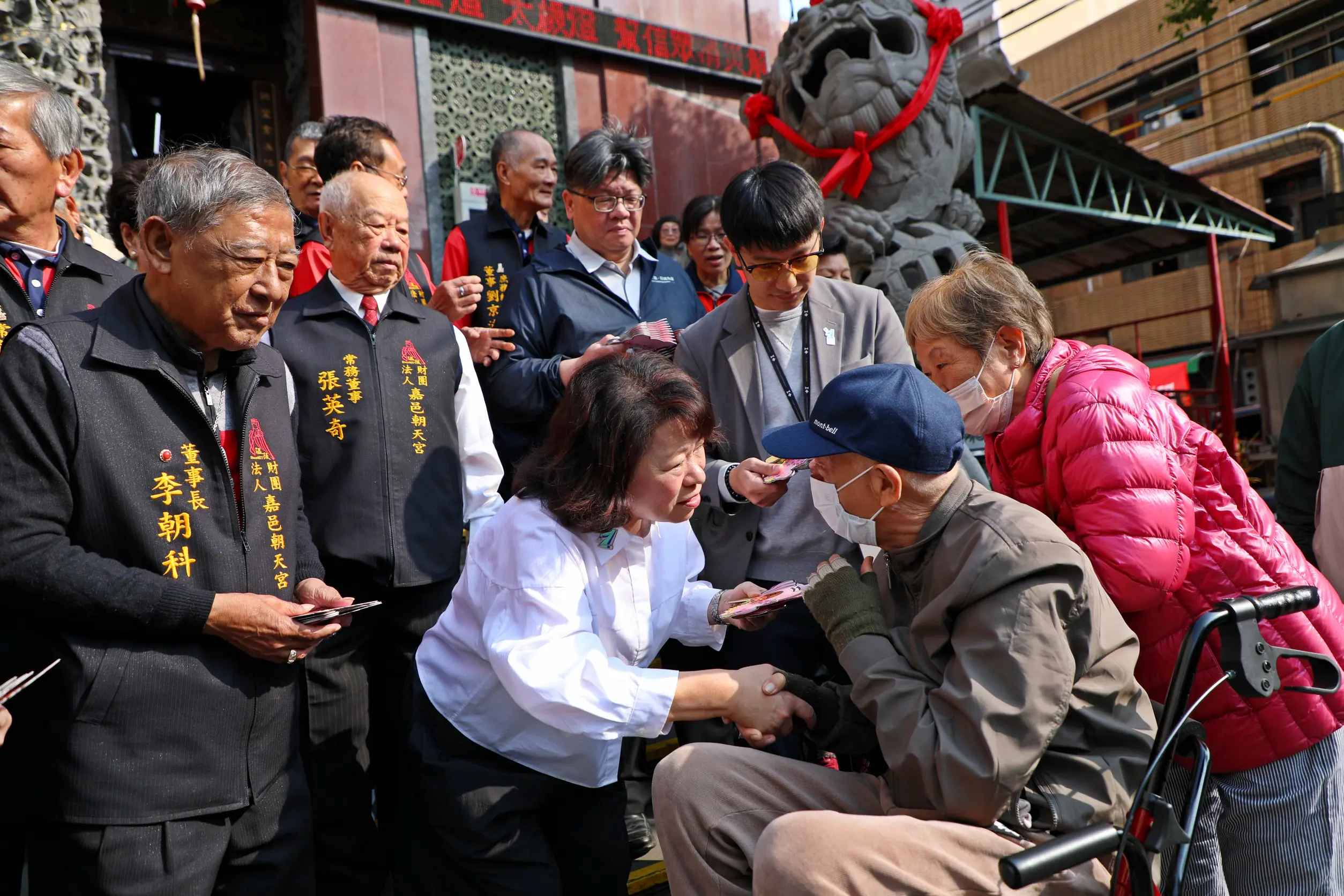 今年等待領取小紅包的民眾排成長長人龍,還有民眾帶著家中的毛小孩出門走春、一同排隊領取紅包,新年初始熱鬧滾滾。「頭香」由市民李先生拔得頭籌,他說他一早六點多就來等待,已經連續四年都從黃敏惠市長手中領到小紅包,新的一年相信能迎來新氣象。黃敏惠市長與所有前來領取小紅包的民眾互道新年快樂、親切合影,氣氛熱鬧溫馨。