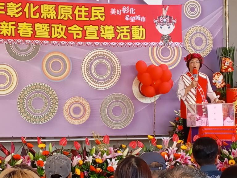 為讓彰化縣內原住民朋友感受春節氣氛,暢通各族傳統文化維繫橋梁,縣長王惠美7日上午與原住民各族族人在彰化縣原住民生活館喜迎新春,與會人潮爆滿,氣氛熱絡!同時藉此宣導政令,使族人深入瞭解政府的施政方針及對原住民族各項福利的重視。王縣長表示,記得剛上任時彰化的原住民朋友是5,786人,現在人數增加到7,544人,期盼原住民朋友把彰化當成第二故鄉,縣府會努力為原住民朋友提供更好的生活。