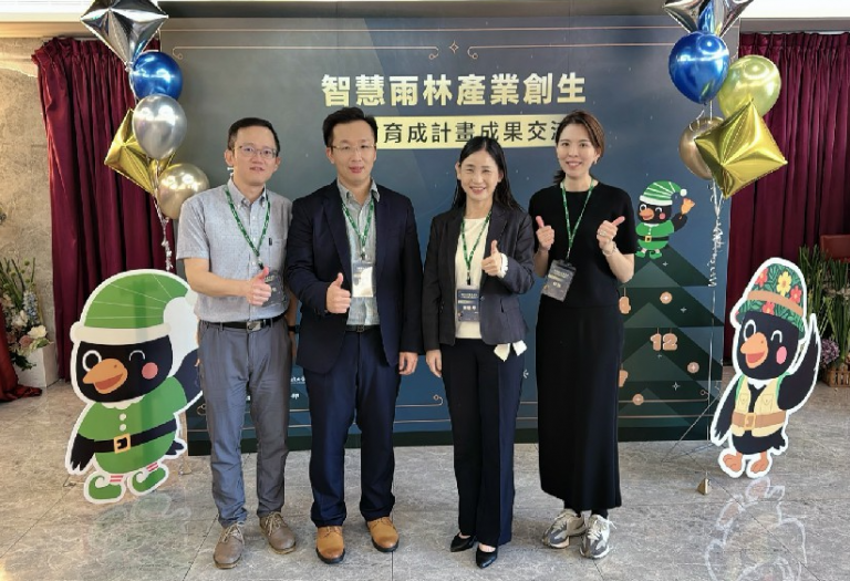 ▲義大教授團隊參與「教育部智慧雨林產業創生人才育成計畫成果交流會」(楊俊哲、謝名家、陳麗琴及林琳)。(圖/義守大學提供)