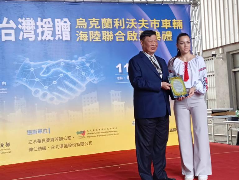 台灣援贈烏克蘭利沃夫市車輛海陸聯合啟運典禮上,烏克蘭方面也特別表達感謝,由利沃夫市政府委辦的 City Institute 與烏克蘭福爾摩沙友好協會分別致贈感謝牌,肯定台灣民間持續提供的人道協助。
