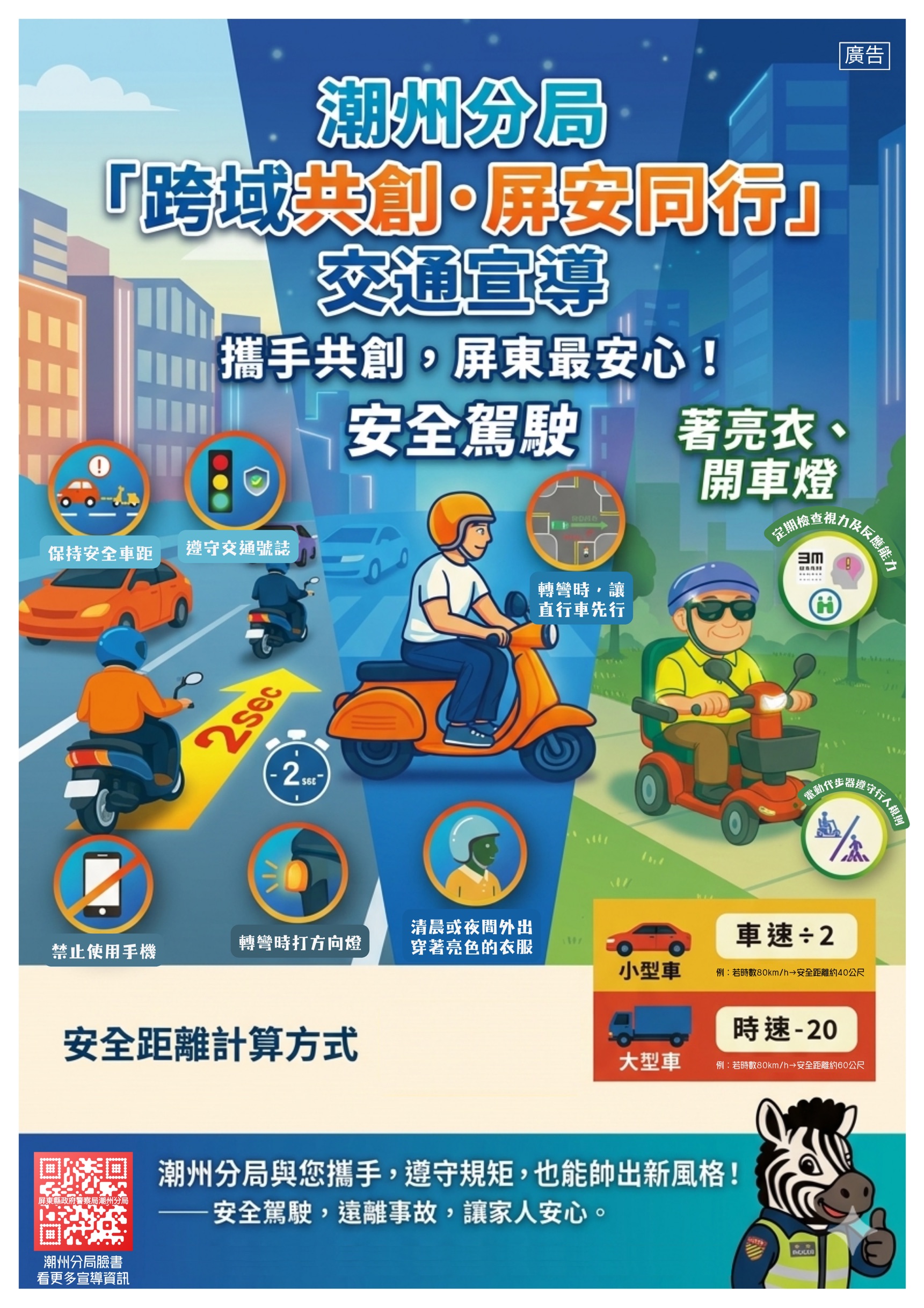 潮州分局長黃世德表示,交通安全需要全民共同參與,透過志工的力量,不僅能拉近與民眾的距離,也能讓宣導更具溫度與感染力。未來將持續結合多元資源,推動各項交通安全宣導活動,期盼將正確觀念深植人心,共同營造安全、友善的用路環境。