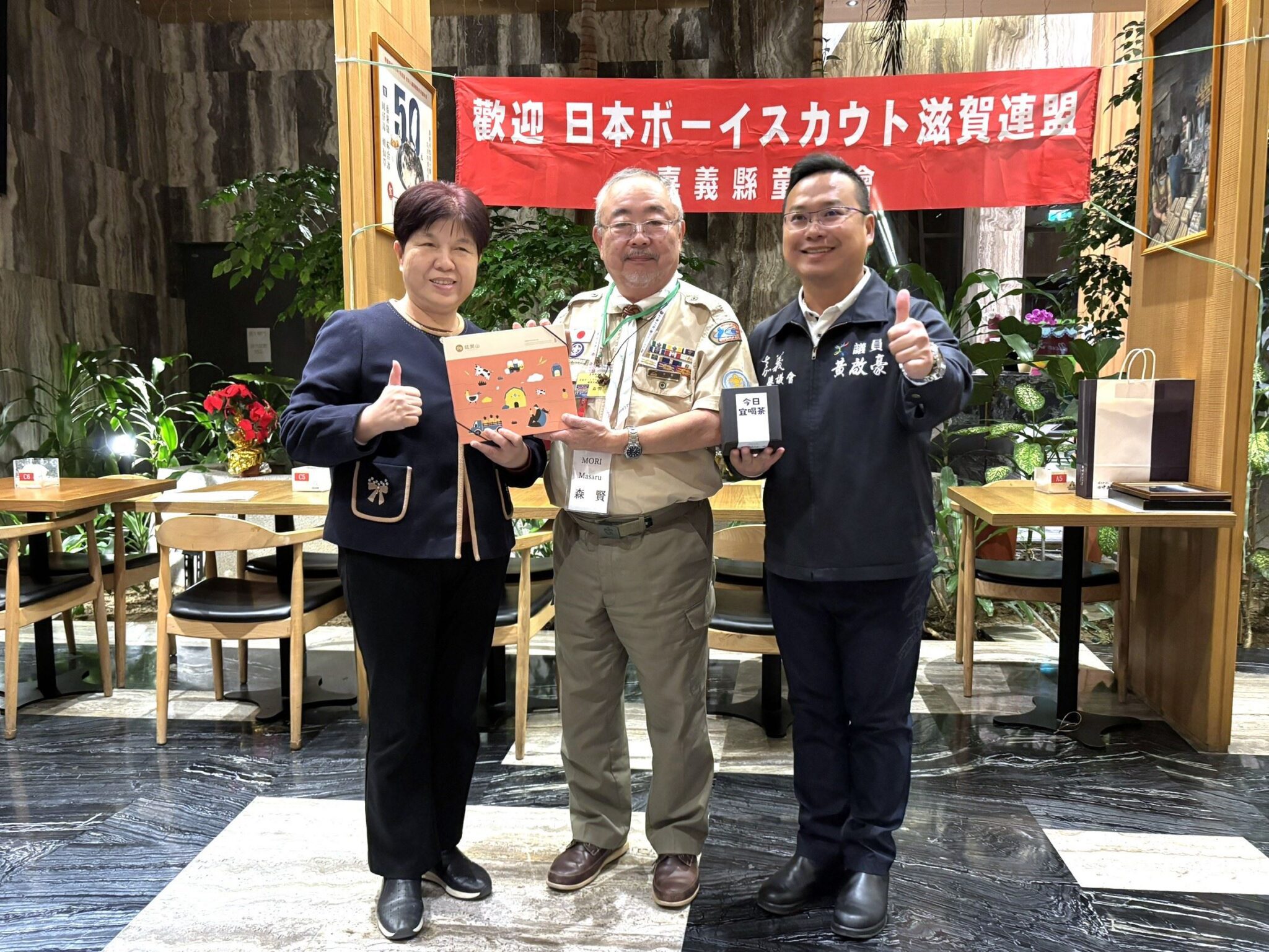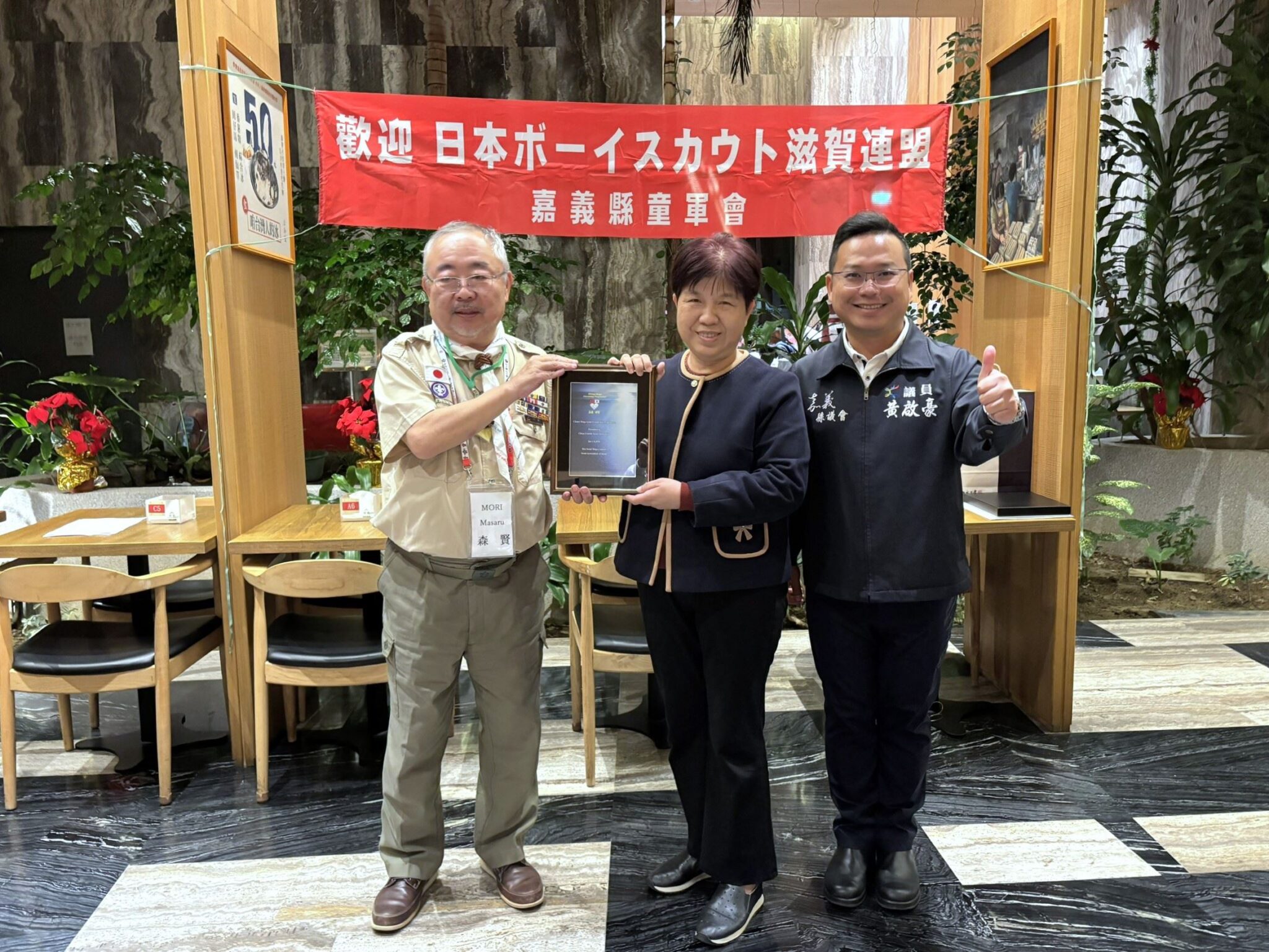 嘉義縣政府教育處長李美華以嘉義縣童軍會副理事長身分,偕同總幹事吳敏男及多位理監事,於2日晚間設宴歡迎遠道而來的日本童軍夥伴。晚宴中李美華處長代表嘉義縣長翁章梁致贈交流紀念品,展現嘉義縣對國際童軍交流的高度重視與誠摯情誼。嘉義縣議員黃啟豪在嘉義高中求學期間曾為童軍社成員,並於去年完成嘉義縣童軍會辦理的輔導木章訓練,當晚亦特別到場致意,並接受結訓證書頒發。