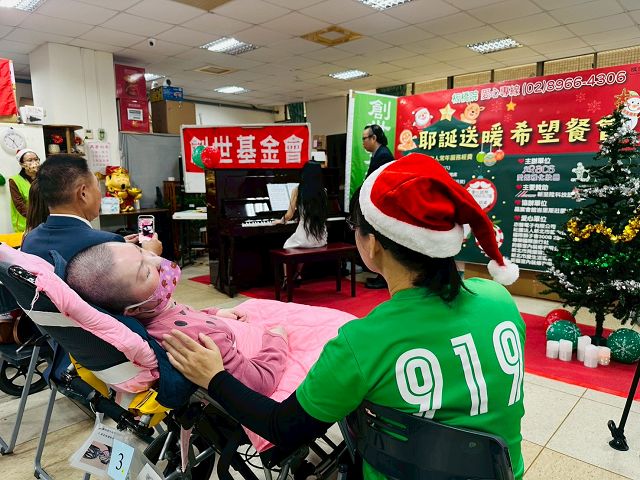 歲末將近,創世基金會板橋院籌募植物人照護經費卻十分困難,因受到國際情勢及天災影響,募款持續衰退,但植物人照護不能停歇,關鍵時刻,長期支持創世的愛妮雅化妝品集團蕭碧月副總裁率先伸出援手,主動發起「12/20耶誕送暖愛心餐會」,為創世植物人募集經費,並邀請新至陞科技股份有限公司及友好企業一同加入支持,愛妮雅化妝品集團也提前於12/5上午10時,偕同新至陞科技股份有限公司到板橋院關懷院民,進行社區融合活動,由愛妮雅集團千金陳子瑜特助帶來溫暖的鋼琴演奏,透過旋律刺激,讓長期臥床的植物人感受外界溫暖與關懷,現場氣氛溫馨動人,也為愛心餐會暖身,並號召民眾及企業加入公益行列,以實際行動守護植物人家庭。