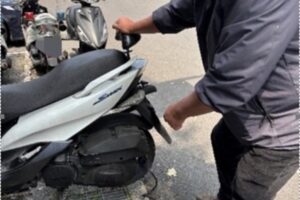 陳員聞訊後毫不遲疑,立即陪同林男前往勘查車況。經仔細檢視,確認後輪胎遭鐵釘刺穿導致漏氣,已無法安全騎乘。由於該路段地處偏遠山區,周邊缺乏機車維修資源,陳員隨即提供腳踩式打氣機協助林男臨時為輪胎補氣,並詳細指引最近的機車行位置,使機車得以勉強恢復行駛,幫助林男順利脫離險境並前往完成修繕。