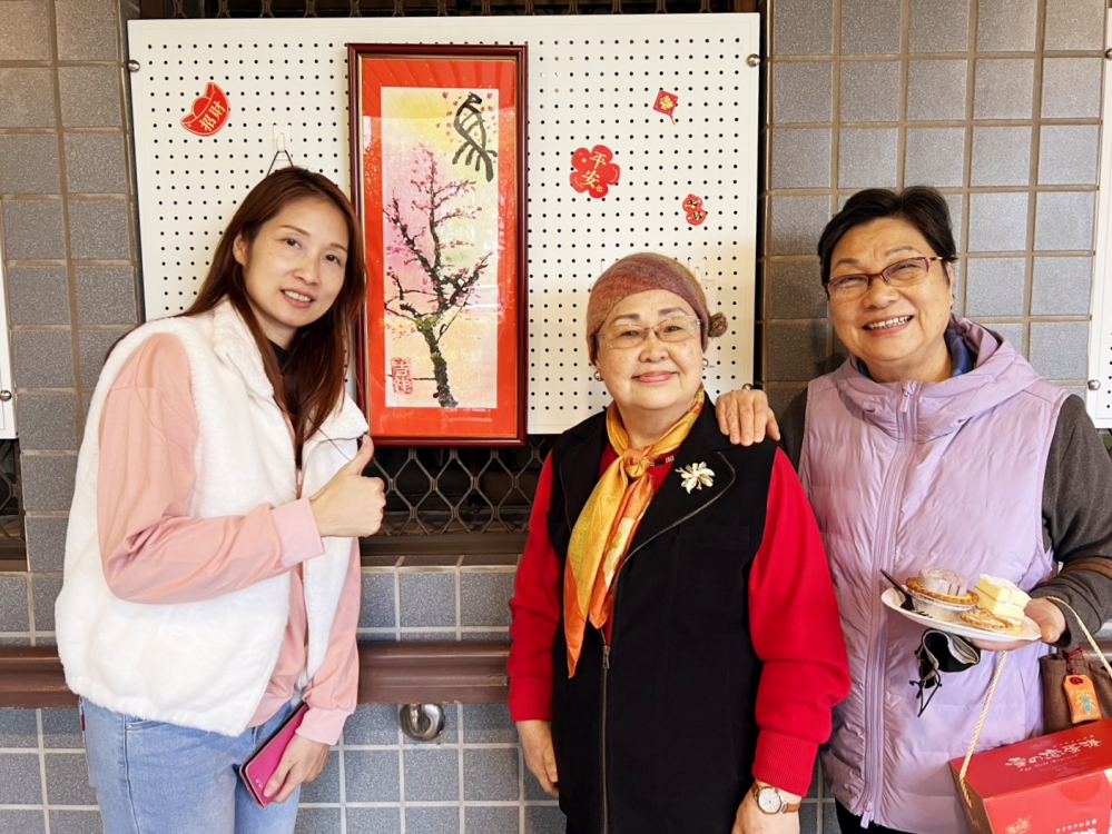 另外,有書法社成員現場提供春聯作品供住民索取,讓大家將滿滿祝福帶回居室,增添過年氣氛。茶會現場備有精緻點心,住民一邊品嚐美食,一邊欣賞其他住民充滿巧思的創意春聯,氣氛熱絡、笑聲不斷,洋溢濃厚年味。