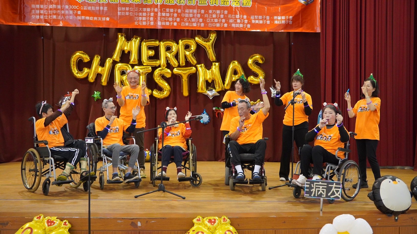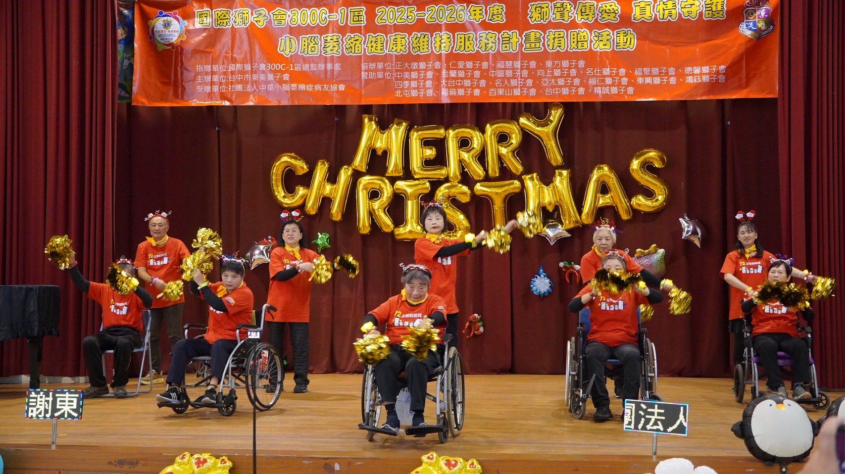 活動中,臺中東美獅子會會長洪霈珊與獅子會300-1區總監林玉彪,代表歷屆獅友捐贈新臺幣 25 萬元社福金,支持協會 2026 年度復健娛樂化課程;仁愛獅子會亦捐贈毛毯物資,為經濟弱勢病友家庭送上寒冬溫暖。