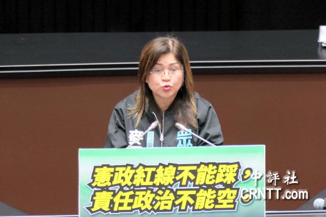 麥玉珍表示,台灣民主憲政正處於嚴峻的十字路口,當行政權實質阻止立法院三讀通過的法律生效時,憲政的紅線正遭到踐踏,責任政治亦隨之被掏空。目前台灣陷入權力對抗的循環,導致政治內耗與原地空轉,這並非制度本身的缺陷,而是“人為選擇”造成的混亂。她強調人民的需求僅是安居樂業與福利到位,並非無止盡的政黨惡鬥。對此,她公開呼籲賴清德應以台灣利益為重,停止將人民視為敵人,並要求行政院與立法院應儘速回到憲政軌道,透過理性協商解決僵局。