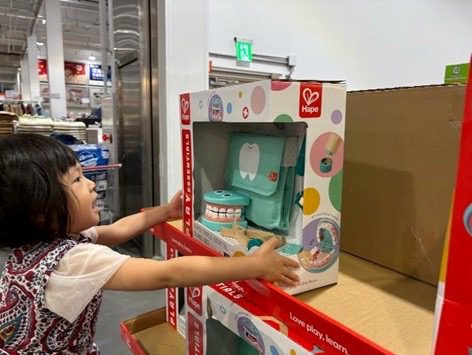 原PO表示,雖然家中沒有特別過聖誕節的習慣,但看到賣場裡琳瑯滿目的可愛裝飾,連自己都忍不住心動,差點想帶一棵小聖誕樹回家。不過這趟逛賣場的主要任務,是讓孩子自行挑選禮物,最後選了一組兒童牙醫玩具組回家,認為價格實惠、玩法多元,CP值相當高,也推薦給仍在苦惱聖誕或新年禮物的家長參考。