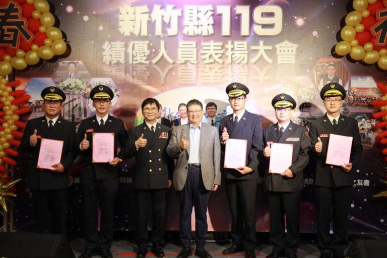 新竹縣消防局為感謝警義消、救護義消及婦宣人員的辛勤努力與奉獻,119消防節前夕17日舉辦「115年119擴大防火宣導暨績優人員表揚大會」,縣長楊文科表揚全國消防楷模林佑安小隊長、義消楷模邱定忠大隊長、救護志工楷模鄧慶章幹事、防火宣導志工楷模徐玉里分隊長及資深義消傅德賢副分隊長等傑出人員,對他們的卓越表現給予最高榮譽與肯定。