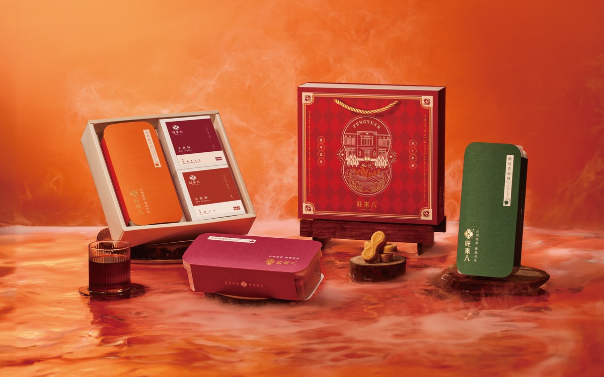 旺來八8字形鳳梨酥,品牌創辦人以家鄉豐原舊名葫蘆墩為靈感,設計研發出8字形的圖樣,經過反覆測試、調整機器、開模具、申請專利,18個月的時間,慢慢把想像變成現實。