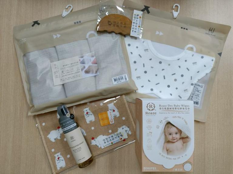 ▲新竹縣長楊文科致贈金母嬰禮品。 (圖/記者蔣彤雲攝)