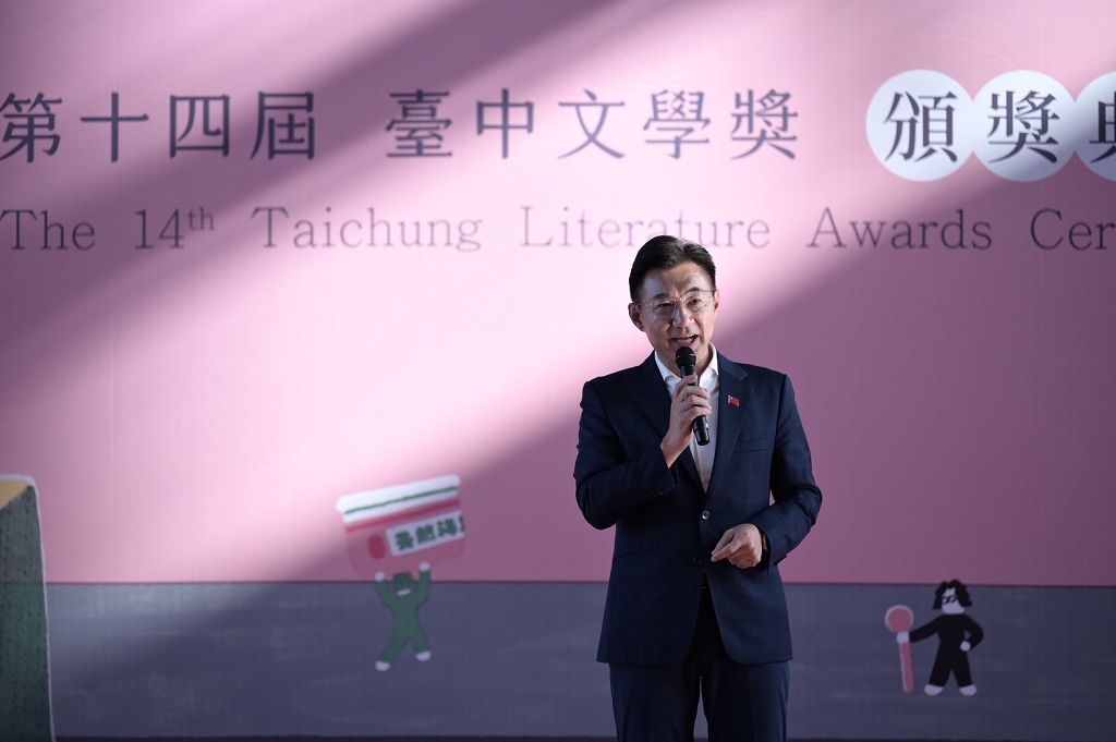 【台灣電報記者廖宥婷/台中報導】 第14屆「臺中文學獎」頒獎典禮今(6)日於臺中市政府盛大舉行,今年投稿作品高達 2,452 件,再創歷年新高,來自 香港、馬來西亞、上海、美國、英國、韓國、日本、法國、澳洲、新加坡 等地的國際創作者就佔了 428 件,呈現臺中文學的多語、多元與跨國創作能量。 頒獎典禮溫馨一幕 本屆文學獎涵蓋小說、散文、新詩、古典詩、臺語詩、客語詩、童話、報導文學與國高中職散文等九大組別,題材從家鄉書寫、成長經驗到社會觀察,內容深度與語言成熟度皆受到評審肯定。 立法院副院長江啟臣蒞臨頒獎典禮 典禮首度邀請作家 陳栢青、吳曉樂 擔任雙主持人,以幽默節奏與創作對談串起活動,並將九大文類比喻為「慢燉湯頭、清蒸佳餚、涼拌小菜」,象徵臺中文學的細膩與多樣。現場設置的似顏繪打卡牆也成焦點,許多得獎者提筆簽名留念,氣氛溫馨。 第十四屆臺中文學獎首得獎者合照 臺中市副市長 鄭照新 表示,臺中從日治時期的櫟社到當代作家群聚,一直具有深厚文學底蘊。今年主題「文火慢燉.細寫人生」象徵在 AI 時代中,文學仍是城市情感的連結,使故事得以傳承。 臺中文學獎首次由作家擔任頒獎典禮主持人 立法院副院長 江啟臣 則說,文學不需喧嘩也能改變世界,只要有人書寫、就會有人閱讀;在快速變動的時代裡,文字更能呈現創作者獨有的生活觀察與不可取代的價值。 第十四屆臺中文學獎頒獎典禮大合照 評審團指出,本屆青年創作者表現亮眼,展現敏銳視角與語言掌握度;小說、散文與報導文學的敘事成熟,詩組語言風格多元,童話則兼具想像與寓意,使臺中文學獎成為新世代發聲的重要舞台。 臺中市副市長鄭照新逐一頒發首獎得獎者 今日典禮由鄭照新副市長、文化局副局長曾能汀、客委會主委江俊龍及多位評審與貴賓共同頒獎。今年得獎作品集同步上線,市民可至臺中市文化局官網下載,或至市立圖書館借閱,感受臺中文學的蓬勃生命力。