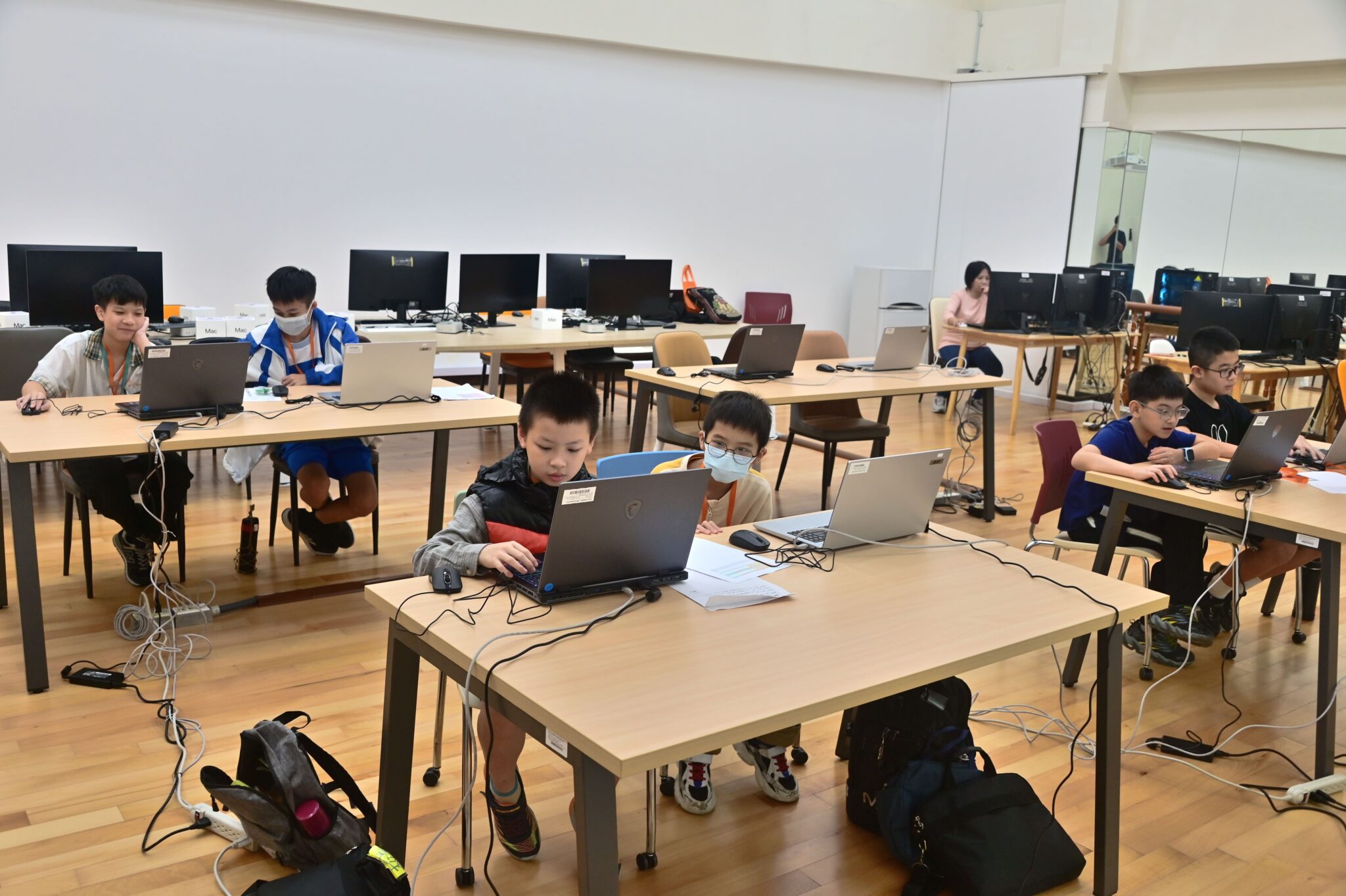 未來實驗室全景_國中小同學聚精會神撰寫AI程式。