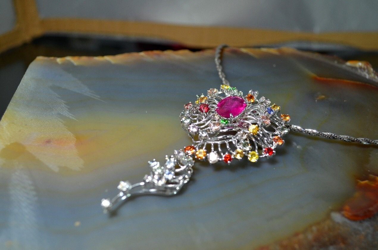 談及設計理念,吳佳楨以「起承轉合」形容珠寶創作節奏:以主石為核心,透過金屬結構與線條轉折營造動態美感,最終融合色彩與情感,使作品與佩戴者產生共鳴。他引用席勒名言「思想才是沒有界限的」,強調珠寶藝術應突破框架。