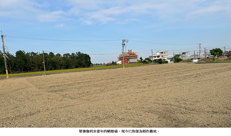 台灣鄉間早期的晒穀場,多數都在自家的「門口埕 (庭院)」,因此,或可推測管事詹利亥的「厝宅」建物就在這晒穀場附近。