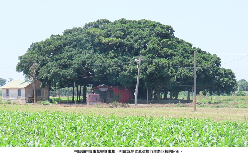 三腳貓聚落也曾出現「管事墓」及「管事橋」的名詞,但現在已找不到墓與橋的遺跡。耆老卻又十分篤定的指出其位置就在「三腳貓百年老巨榕」的附近。