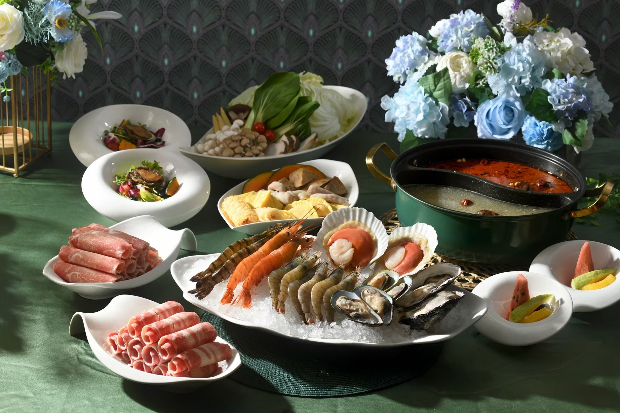 其中最受關注的,就是剛拿下「2025台灣鮮乳鍋物大賽」金獎的《紅白海陸可汗鮮乳鍋》。以動物福利認證鮮乳熬成白湯,搭配帶有辛香層次的紅湯,一鍋兩味、暖胃又療癒。套餐還包含牛肉、豬肉、海鮮與滿滿時蔬,是不少旅客在看完花展後的暖心首選。