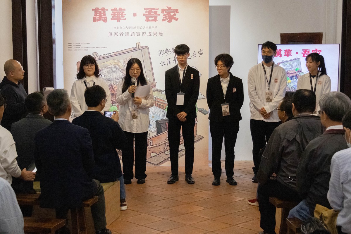 產官學三方攜手—剝皮寮「城西脈動-共築致善」透過青年視角打破無家者標籤 剝皮寮歷史街區除了歷史氣息,現在更多了一份關懷社會的溫暖。台北市文化基金會剝皮寮歷史街區、臺北市立大學社會暨公共事務學系及致伸科技股份有限公司三方跨界合作,於12月19日在剝皮寮27號展間,正式推出《萬華。吾家》實習成果展——本次展覽由 6 位北市大學生發揮創意與實踐精神,深入田野調查,邀請大眾重新定義對「家」與「無家者」的認知。 六位同學一同分享本次於剝皮寮歷史街區實習的寶貴經歷 產官學聯手,落實永續發展目標 (SDGs) 剝皮寮歷史街區近年積極推動「城西脈動」主題企劃,透過空間開放性,成為在地NGO/NPO議題的發聲平台。本次展覽不僅與臺北市立大學社會暨公共事務學系結合USR(大學社會責任),更與致伸科技股份有限公司的「共築致善」計畫進行深度搭配,完美扣合聯合國永續發展目標:● SDG 4 優質教育:讓學生從公共事務理論走進實務佈展,提升議題分析與解決問題能力。● SDG 11 永續城市:透過故事呈現,消除社會排斥,打造具包容性的公共空間。● SDG 17 多元夥伴關係:連結校園、文化場域與在地組織(如芒草心慈善協會),建立跨界共好模式。 學生們導覽展覽內容,帶領大家更加認識無家者議題 從「隱形」到「被看見」,學生視野下的萬華風景 展覽命名為《萬華.吾家》,源於6位實習生在實地參與芒草心慈善協會「街遊」導覽、訪談相關經驗者與社福工作人員後的深刻感悟。學生將無家者在日常生活中面臨的制度挑戰、環境侷限與資源稀缺,轉化為豐富的故事紀錄、影像紀實與互動設計。「我們希望大眾認識的無家者,不再只是片段的刻板印象,而是完整的生命故事。」參展學生表示,透過整理田野筆記與經驗者的互動及交流,他們看見了隱藏在都市縫隙間的社會議題。展覽不僅是成果的展示,更是一場關於「理解」的邀請。 臺北市立大學社會暨公共學系李俊達主任給予學生實習的成果給予大大的肯定 12月19日盛大開幕,邀您共感城西脈動 本週五(19日)上午,於剝皮寮歷史街區舉行開幕茶會,現場由台北市文化基金會黃文彥副執行長、文基會城西營運部李志勇總監、臺北市立大學人文藝術學院徐淑敏院長、臺北市立大學社會暨公共事務學系李俊達主任、致伸科技股份有限公司郭亞陵經理、臺北市政府陳彥良市政顧問、萬華街區發展協會洪文和理事長、萬華社區大學陳巧倫副校長、萬華在地里長及社福組織等多位貴賓蒞臨支持,見證青年世代如何以創新活力為傳統街區注入多元共融的能量。誠摯邀請一同走進剝皮寮27號展間,從青年的眼光出發,重新認識萬華,看見這座城市中更友善、更具包容性的可能。 臺北市立大學社會暨公共學系李俊達主任給予學生實習的成果給予大大的肯定 展覽資訊 ● 展覽名稱:《萬華。吾家》—北市大社會暨公共事務學系實習成果展● 展期:2025年12月19日(五)起● 展覽地點:剝皮寮歷史街區27號展間(台北市萬華區康定路173巷27號)● 主辦單位:剝皮寮歷史街區● 協辦單位:臺北市立大學、臺北市立大學社會暨公共事務學系、致伸科技股份有限公司● 特別感謝:社團法人台灣芒草心慈善協會 學生成果原創曲|萬華是我的家〈萬華.吾家〉無家者議題實習成果展 宣傳曲 : https://www.youtube.com/watch?v=PZ4qH6XIQHU [embedded content]