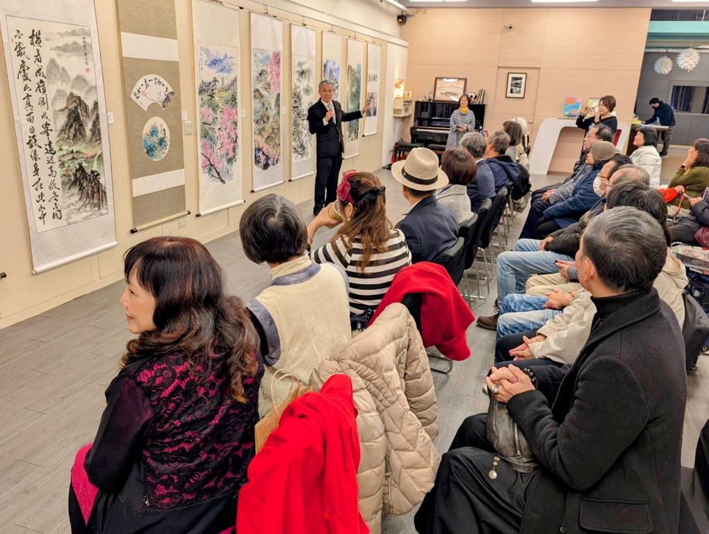 開幕當天,多位藝術家於現場進行揮毫與作畫示範,師生得以近距離觀賞創作過程中的筆墨節奏與構圖思維,感受藝術從構思到完成的即時轉化。透過現場創作與互動交流,讓藝術不再只是展牆上的作品,而是成為可被理解、可被對話的學習經驗,深化校園美感教育的實踐。