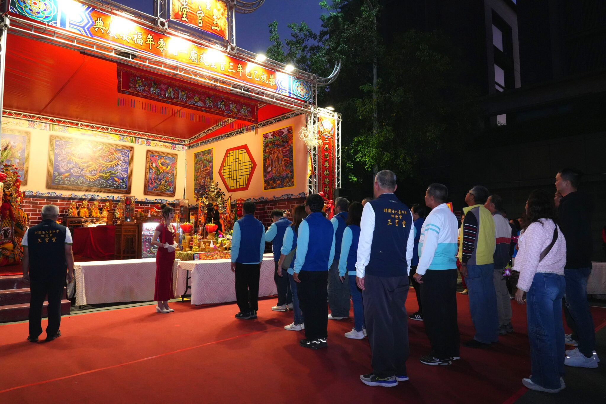 彭副局長指出,四張犁三官堂歷史悠久,主祀三官大帝,是當地重要的信仰中心,長期深耕在地文化、公益服務及社會關懷,並多次獲市府「績優宗教團體」肯定,展現其在宗教文化推廣與社會公益上的重要影響力。今年適逢建廟190周年,廟方除精心籌劃系列慶典外,也特別捐贈北屯區公所一台公務貨車,協助提升地方行政與社區服務效能,感謝董事長陳瑞昌帶領團隊,讓宗教力量成為地方的溫暖後盾,並祝福在三官大帝庇佑下,市民平安健康、台中和順安泰。