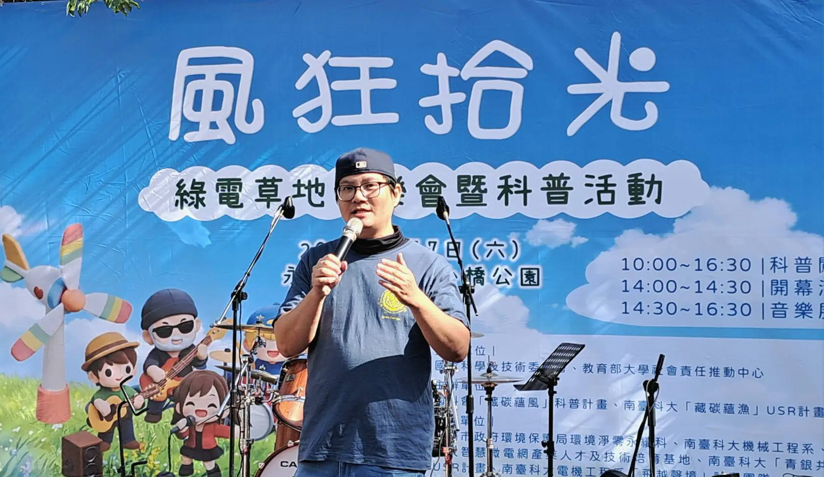 南臺科技大學「藏碳蘊風」國科會科普計畫團隊於 2 月 7 日上午十點起在台南市永康區東橋里小橋公園主辦「風狂拾光—綠電草地音樂會暨科普活動」。活動以風力與太陽能組成之風光互補系統實際供應舞台音響用電,結合音樂展演與多元科普互動攤位,吸引眾多社區民眾與親子家庭參與,於社區公園中打造一場寓教於樂、貼近生活的永續行動實踐。