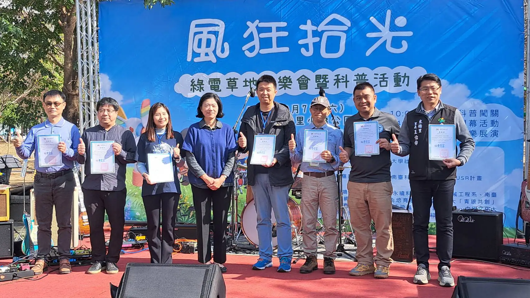 陳宥任老師說,自2016年起為了達成能源推廣與環境教育之願景,每年度於台南在地辦理綠電搖滾草地音樂會,以自身之風能、音樂與幕後音響跨領域之專長,融入幕前展示與體驗,讓能源科技不再枯燥乏味,更加貼近生活。十週年之際以「風狂拾光」為題擴大辦理,除了象徵多年累積的成果,也代表持續將科學帶進社區的初衷,透過實際運作的綠電系統、高度互動的科普攤位加上音樂展演,讓科學與民眾之間產生更加深刻的連結,這正是科普推廣最重要之價值。